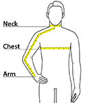 | Chest | 32-35 | 35-37 1/2 | 37 1/2 -41 | 41 - 44 | 44-48 1/2 | 48 1/2 - 53 1/2 | 53 1/2 - 58 | 58-63 |